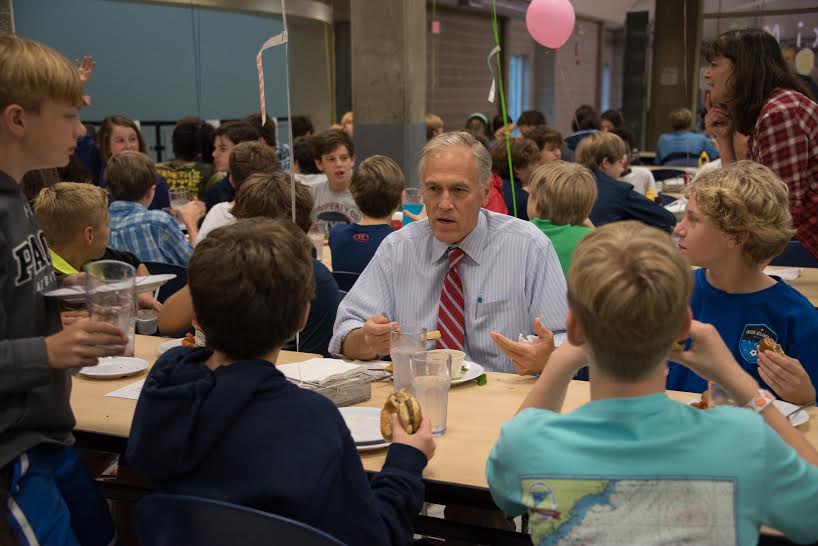 Mr. Anderson joins middle school students at lunch. Photo: Laura Inman